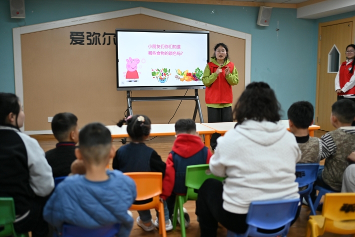 志愿者们根据“3-6岁”“7-14岁”不同年龄段儿童的理解能力与实际需求,分两场开展科普活动。他们精心设计课程内容,通过情景剧表演等方式帮助低龄段小朋友们理解不同蔬菜水果的营养价值;面向高龄段的小朋友,志愿者们讲解了如何辨别变质食物等食品安全知识。在“味觉侦探”、“气味魔法师”“触觉大冒险”等游戏环节中,志愿者将小朋友们划分小组,采取小组积分制,让所有小朋友都加入进来,感受食品的独特魅力。