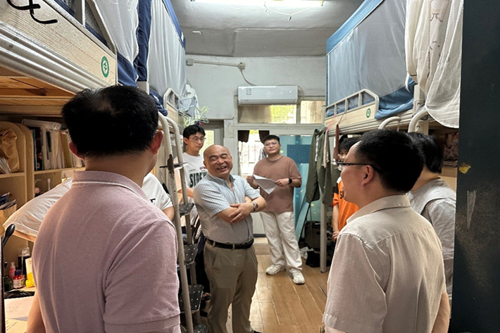 在学生寝室,学院班子成员们详细了解寝室情况,询问同学们近段时间来学习和生活上是否存在困难,也对寝室卫生、安全隐患进行了全面摸排,并就暑期离校安全做了重点强调。学院党委书记周文化、学院院长任佳丽也与正在备战考研的同学们进行了深入交流,他们表示,要充分把握晚自习时间,少游戏、勤学习,锚定目标全力备考。